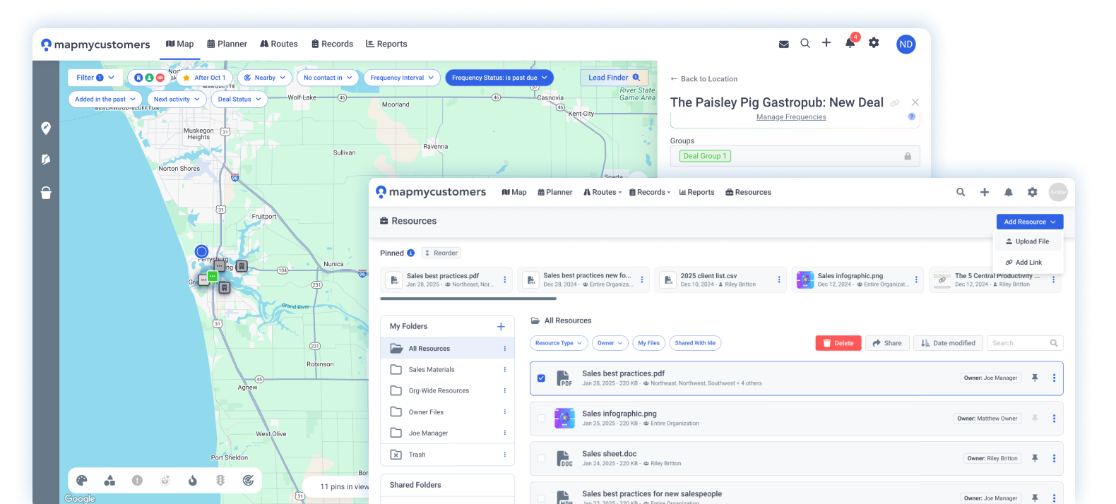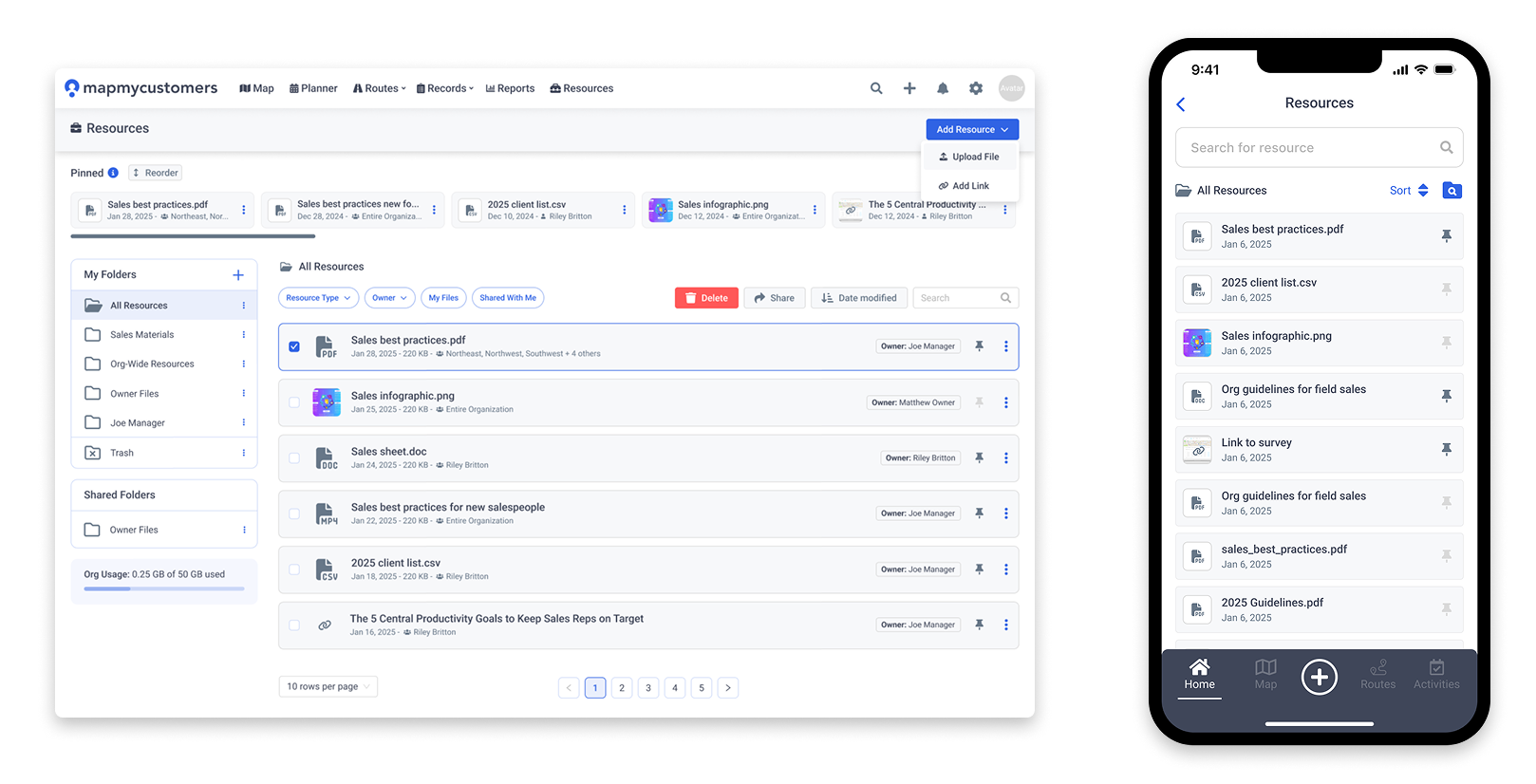 A complete org-level file management system built for owners to manage files and salespeople to quickly access pinned files on their mobile device.