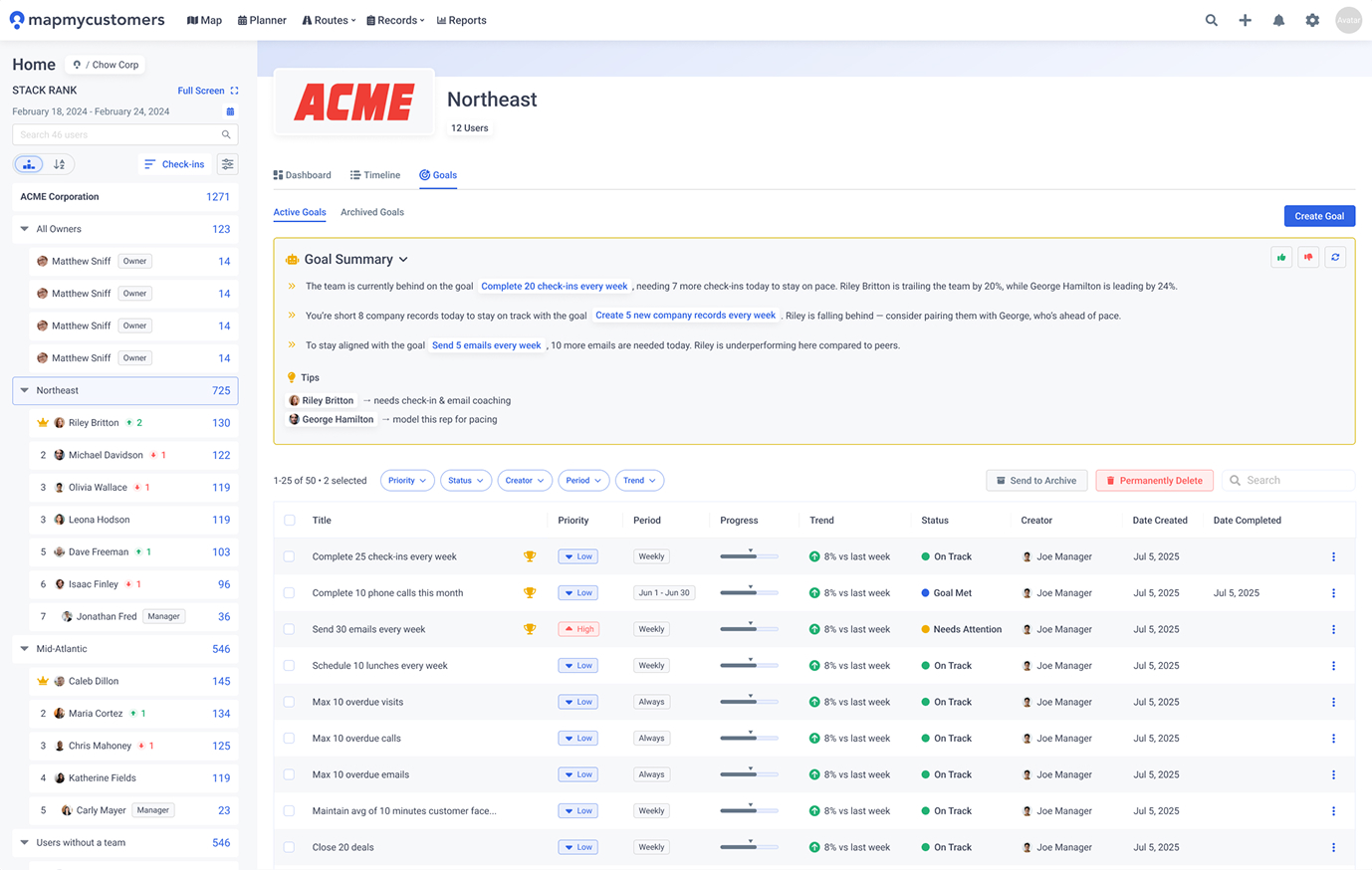 A complete Goals platform for teams to create, manage, and track sales goals + an AI generated summary for surfacing most important info.